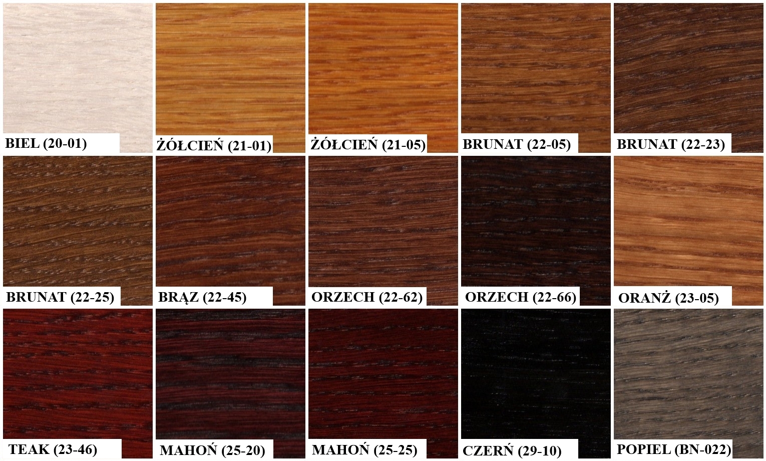 - 15 wybarwieniach drewna (ta sama cena)
