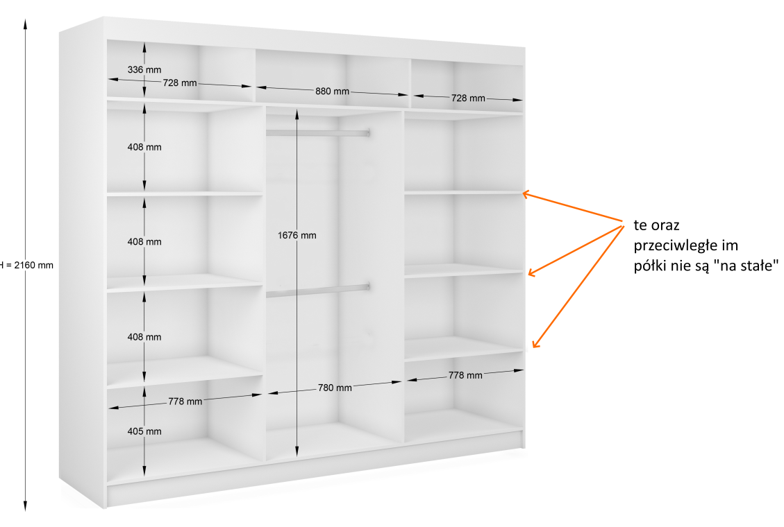 | Szerokość szafy przesuwnej | 240 cm - 249 cm |